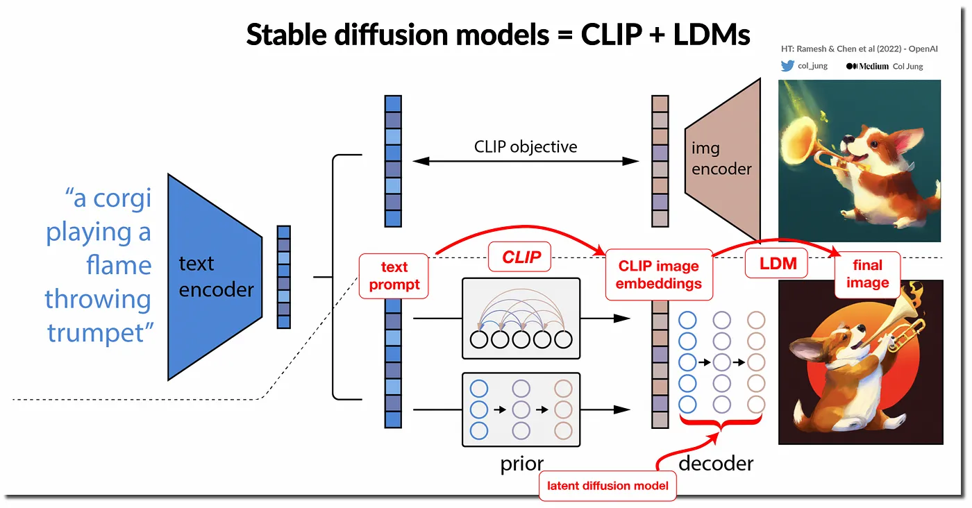 Schema di funzionamento dei modelli a diffusione – Ramesh & Chen et. al (2022)